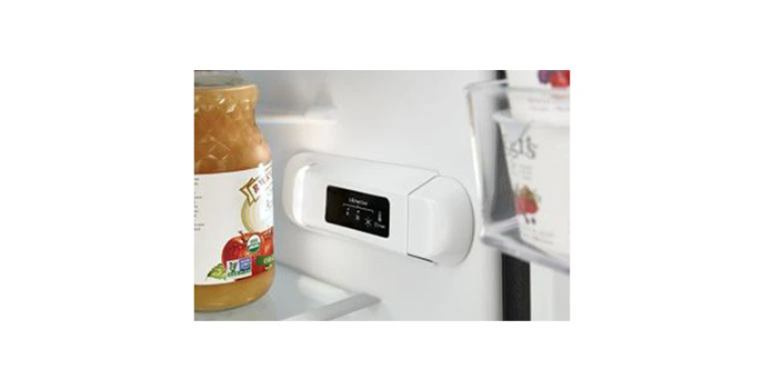 This model is an energy-efficient top-freezer refrigerator that consumes less energy and releases less toxic greenhouse gas emissions. It basically saves money on your electricity bill. This fridge has many essential features like an extensive storage area, adjustable temperature control, and reversible door design. Another notable feature is adjustable defrost setting options that can be set according to the freezer temperature and runs the defrost function only when necessary. The interior of both the top freezer and the bottom fridge compartment is designed with frameless glass trays and shelves. Also, the adjustable thermostats in this device are separate for both chambers.