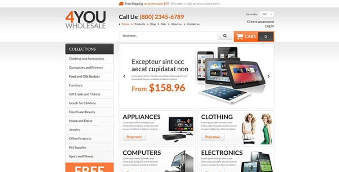 This Wholesale Store Web Template has a clean code interface that makes it more efficient than others like MMA Items Shopify Theme and Prestige Shopify Theme. It is one of the efficient theme stores in recent times.