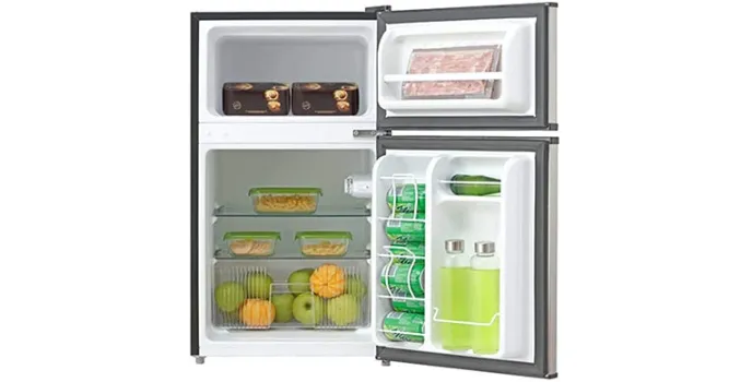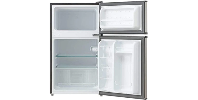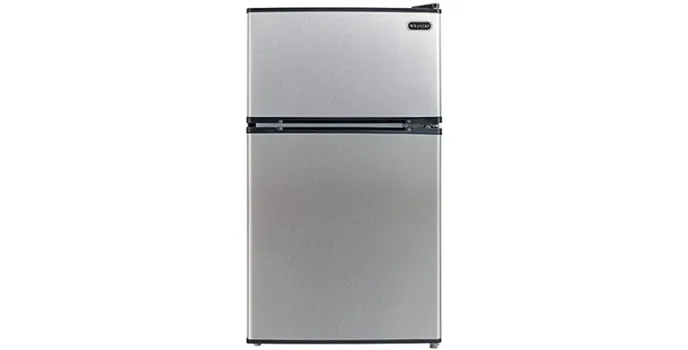 Stylish design double door Whynter compact refrigerator stores both fresh and frozen food. This space-saving unit is constructed with a flat back design for quick adjustment to any places and comes with enhancements for bottle storing in the door walls and operates in a quiet environment for seamless operation in living rooms has an adjustable thermostat control for a full range of temperature control for fresh and healthy food.