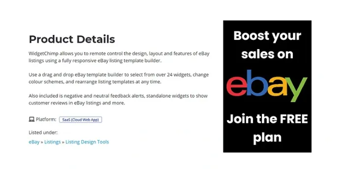 Widget chimp is a high-quality eBay listing design platform, making it accessible to users to use at any point in time, with its intuitive and fully responsive design.