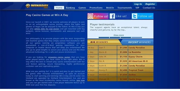 WinADay Casino - Vegas Style Casino Games And Secure Gaming Environment