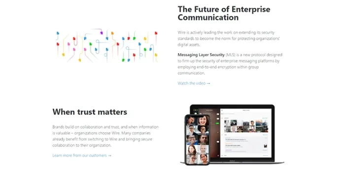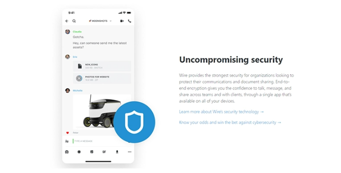 Wire is a popular corporate collaboration suite that includes secure messaging, group chat, file sharing, and the ability to securely collaborate with external clients. Signal Private Messenger and Microsoft Teams are two other choices.