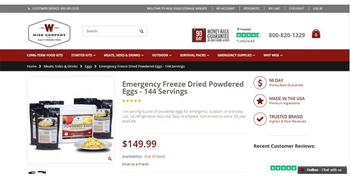 An emergency supply of powdered eggs from the Ready Wise company, formerly known as Wise Food, Contains 144 serving ingredients comes with pouches of lock-in stacking buckets for compact and secure storages, and these are packed with a crush-resistant bucket with a simple grab, and go handles make it's more convenient for transporting and makes an addition for emergency food storage advantages.