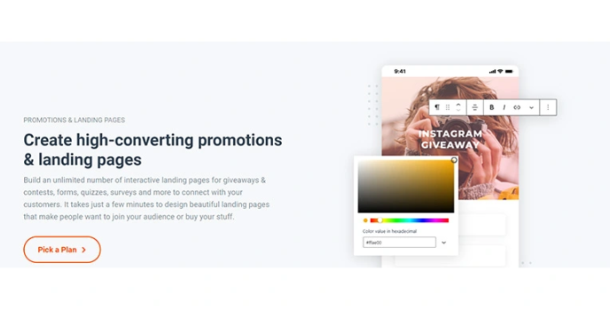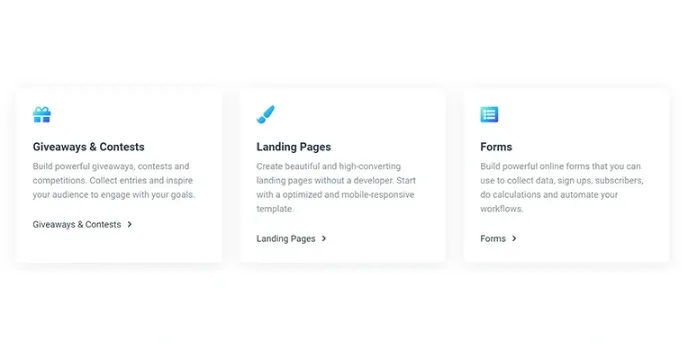 The viral email marketing software helps users build an unlimited number of interactive landing pages for giveaways and contests, forms, quizzes, surveys, and so much more to connect with customers.