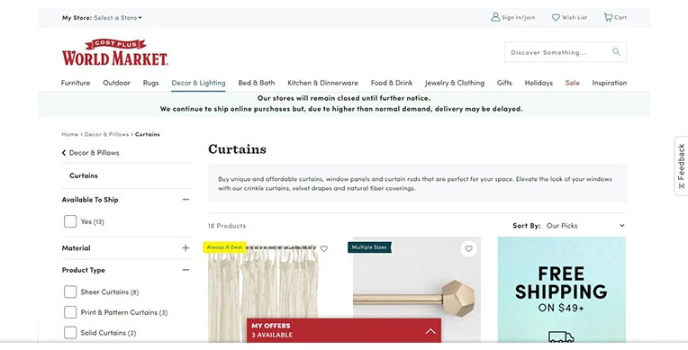 Elevating the home's entire look with elegant drapes and decor through the top-brand Online Brands Website enables users to collect the ideal window treatment, door covers, and other accessories to make the perfect space. Finding the perfect decor is not difficult with the World market Online Website, where one can research a wide range of premium decor collections in various patterns by scrolling the screen.
