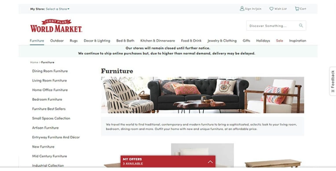 Like the World market, FurniturePipeline.Com and Totallyfurniture.Com also provide outdoor seating, dining furniture, and more to the customers with quick delivery.