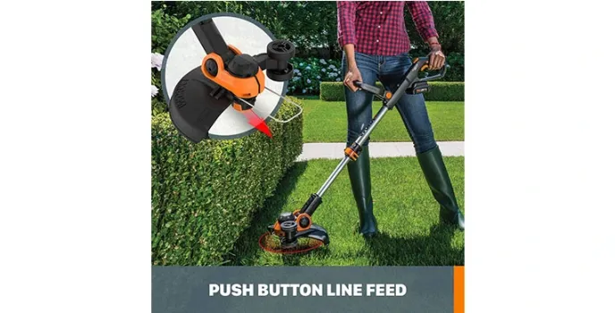 The product comes with an innovative push-button command for the feed spool system for instant line feeding. It also offers free spools for life. It comes with two inclusive batteries that are powerful and lightweight with 20V power share. The MaxLithium batteries come with this inbuilt tool and can be used on any other device in the WORX Powershare family. The head turns 90 degrees, and you can trim and edge on sloped terrain, and even reach tough-to-reach places compared to the Husqvarna Weed Eater. Not only that, but the WORX weed trimmer also comes with rubberized wheels, which are used to support and guide the edger, giving straighter lines and cleaner cuts.