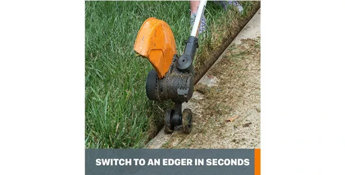 This Worx Weed Eater is a battery-powered weed eater that is available as a cordless type for home-usage. Entirely suitable for home garden job work, this product comes with an innovative command feed spool system that ensures instant cutting at a button's touch. It is a 2-in-1 product that easily converts from a trimmer into an in-line wheeled edger in no time. Powered by two 20V Max Lithium Power share batteries, this product offers total power and performance of 40V.