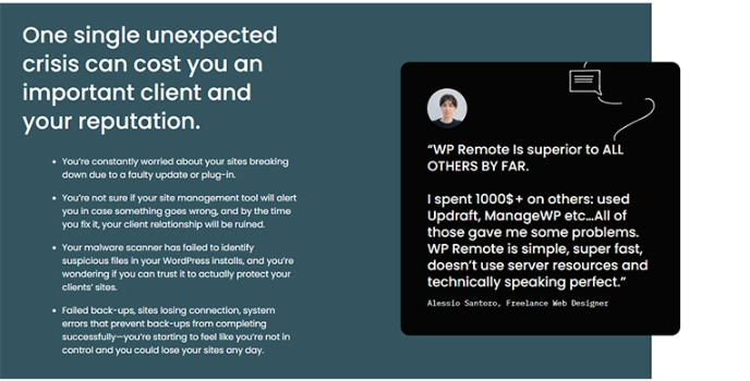 Problems might come from any side in human life. Same in the website development, After performing the updations or changes, the results might be negative. In this situation, WP Remote helps you well. It supports the automatic offsite backup and soon after finding a problem, the user can restore the old site with just a few clicks.