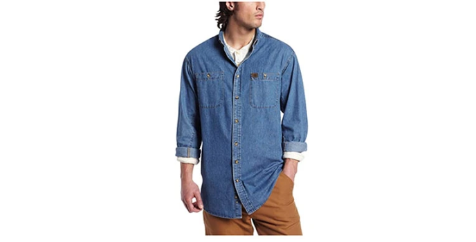 Wrangler Riggs Workout denim shirt is a modern and stylish shirt. It offers a relaxed fit to the users. It can be teamed with a T-shirt underneath or worn alone. The button-up shirt makes the user feel at ease during long working days as it allows them to fold the sleeve and feel comfortable. The ease of movement makes it one of the best denim shirts readily available online.