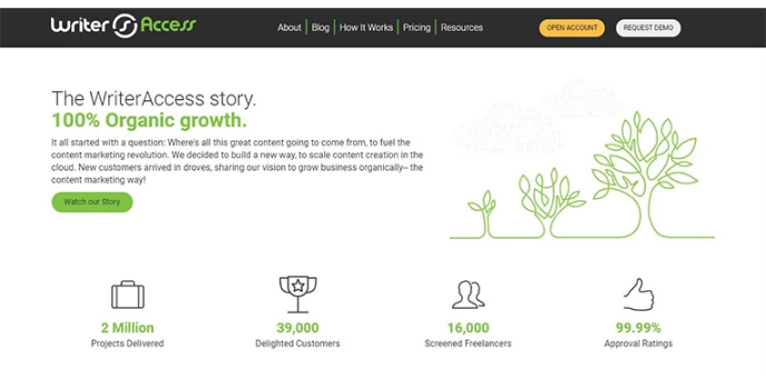 Writer Access is considered as one of the best content creation services offering all writers to get tons of access to online jobs and business services. It is a freelance platform that helps you create a profile and take a test, which is then reviewed by the Writer Access Team. This site enables companies to join their platform and collect the content of all diverse topics, ranging from lead magnets to case studies, blog posts, and direct mail letters. The star rating provided by this freelance site helps understand the different projects that you can work on and how much you can earn through each of those projects, and the platform is. The biggest benefit of this service is that you can work with big brands like Microsoft, Carmax, etc. and get the highest paying projects that could help you earn so much as a writer. This is a great place to find the best opportunities online, similar to Constant Content Freelancing Platform.