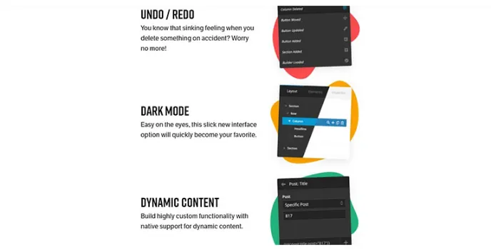 The new layout enables you to visualize all of your web layout content in one simple view. You can move, edit, duplicate and delete content with ease. It also enables infinitely nested content. It has a new Dark Mode that makes the theme stunning for the user's eyes. These features have a new slick new interface option.