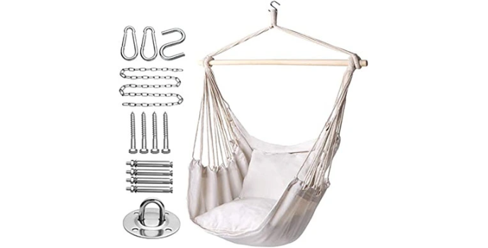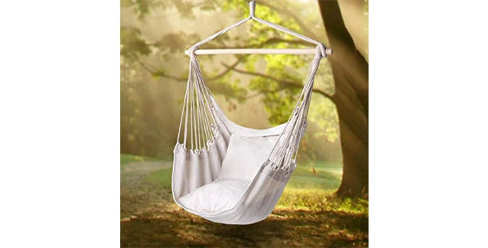 This fashionable yet very comfortable chair comes with firmly padded two cushions for better surface and back support and other important installation accessories such as hanging rope, hook, a bag that enables the chair to be installed easily. Moreover, the Y-Stop hammock can bear 3.5 pounds that never disappoint users to feel comfortable while swinging!