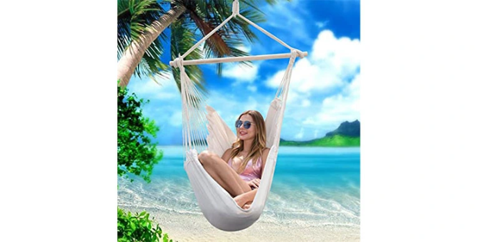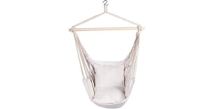 Check out the great alternative high-rated chair furniture to accommodate inside and outside of the home! The Y-Stop Hammock Chair is a rope hanging swing product that comes in beige color and intended with cotton and polyester combination components. It helps not to release thread shortly, eliminate the smell, and steady appearance for lying down anywhere to fulfil enjoy, relax, and comfort all day. The high-quality wooden bar and soft sponge padded lead to maintaining the chair's equal balance, which is suitable for kids, adults, seniors, and pets as well. This hammock chair is cozy yet comfortable furniture for reading books or watching movies and provides much more comfort than a couch or sofa.
