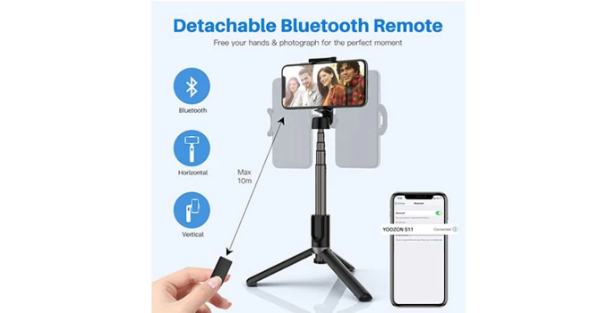 Yoozon phone stand is a trusted and reliable brand that provides buyers with the best cell phone stands. It has a compact design with a length that is extendable. The product is equipped with an adjustable holder for flexibility. The product can provide the users with the best compatibility for all smartphones and Bluetooth devices. It comes attached with a rechargeable wireless remote controller.