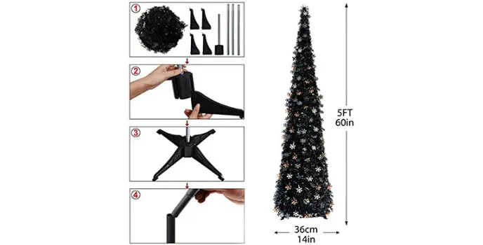 Apart from that, this black Christmas tree is reusable. Once the holiday season is over, it can easily be collapsed and disassembled, and neatly stored for the next year. The tree from Yuqi is perfect for small homes, apartments, dorm rooms, families, etc., who want to enjoy the holiday with fun and excitement.