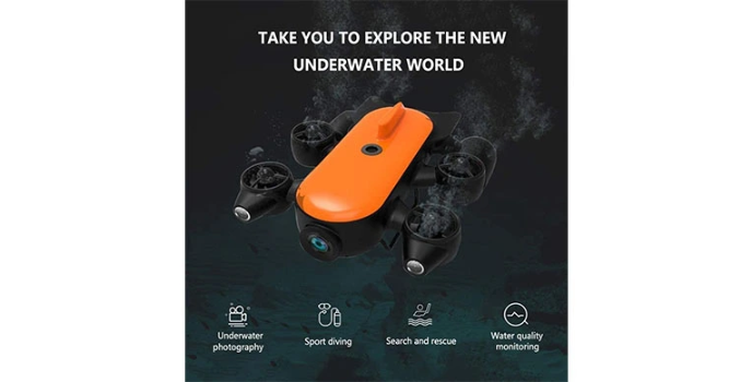 It is the best underwater drone available in the market with ultra stable-shooting features. World's first balance stabilizing system to capture professional high-quality wifi live-streaming video. Best Resolution for Aqua World. It is a 4k camera drone providing 30fps video, including Full HD 1080P 120fps resolution and 16MP megapixel still underwater photo. YWYAJ has a diving speed of 6.6ft/s that can dive down to a depth of 328ft underwater with detachable Battery Design - 3-hour C-hyper helix rechargeable power battery.