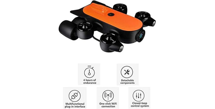 YWYAJ has closed-loop contents with a multifunctional plug, and It connects to wifi easily. It also comes with color filters. This underwater drone has a high angle shooting of 120 degrees and a low angle shooting of 60 degrees. It flexibly rotates at every possible angle. Enjoy your underwater experience and capture every moment you enjoy.