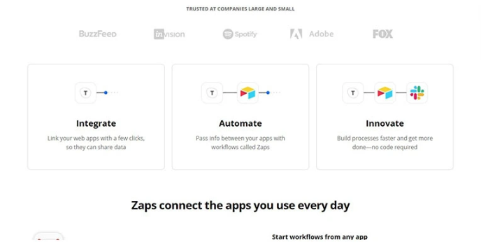 Zapier marketing tools are highly compatible with Spotify and Adobe. It helps to integrate all the different social media platforms like Facebook, Gmail, and Instagram quickly and quickly. It works with over 1300 business tools and connects to applications quickly and is quite versatile, flexible, and easy to use, and helps boost your business's efficiency.