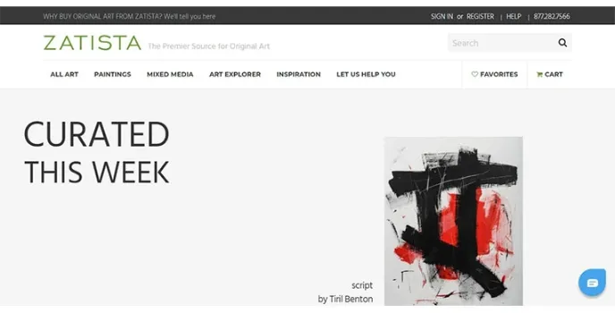 For unique, state-of-the-artwork, Zatista is one of the best platforms as compared to Etsy. On viewing the website, it is simple to assess that it is very straightforward and precise. Signing up is free, and in case you sell a piece; a commission of 18% is provided. No upgrade options or premium memberships are offered which are available at websites such as Etsy and Eyestorm. With the 'no pay for placementβ feature, the onus is on the artist to deliver high-quality images and product information.
