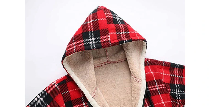 The plaid hoodie jacket is hundred percent polyester, with a lightweight brushed polar fleece with a soft Sherpa filling; it handles heat and humidity for warmth. This Sherpa shirt has two warm, sleeveless palms, scrubbed shirts, tilting shut, long sleeve, sherpa, gives you a lot more comfortable.