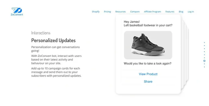 Zoconvert is one of the most popular players, helping to grow the market through its latest functionalities features. It is one of the bots explicitly created for Shopify users to get the best results from their stories. With the Zoconvert chatbot platform's help, it quickly recovers the abandoned carts for the missed sales that are convenient and simple to capturing.this.