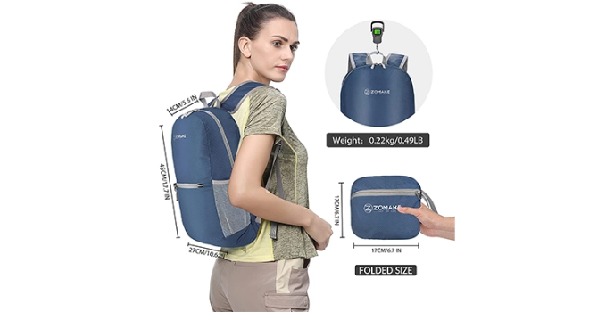 The backpack is easily foldable to save the pressure of carrying it all the way empty. The design is compatible and flexible to pack in your luggage while traveling easily. With the ZOMAKE Ultra Lightweight backpack design, you can avoid additional charges on extra luggage weight in airports.